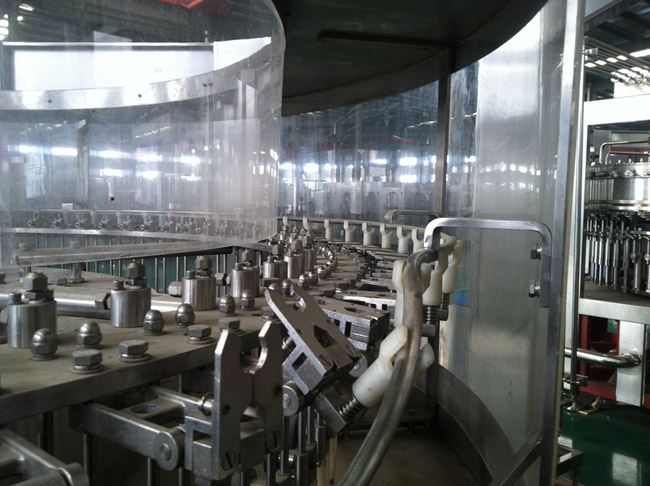 飲用水灌裝機(jī)集沖洗、灌裝、旋蓋于一體,全過程自動(dòng)化運(yùn)行,主要適用礦泉水、純凈水等不含氣飲料的沖瓶、灌裝、封口連續(xù)作業(yè)。本機(jī)大部分電器系統(tǒng)零件均采用國(guó)外優(yōu)良產(chǎn)品,所有與液料接觸的地方均采用優(yōu)質(zhì)的不銹鋼材料制作,主關(guān)鍵部件采用數(shù)控機(jī)床精密加工, 整機(jī)光電檢測(cè)各部件的運(yùn)行狀況,無瓶不灌裝,無瓶不送蓋,自動(dòng)化程度高,操作簡(jiǎn)易,具有耐磨、穩(wěn)定、故障率低等特點(diǎn),產(chǎn)品質(zhì)量處于行業(yè)前列,是新老飲料投資者的選擇。